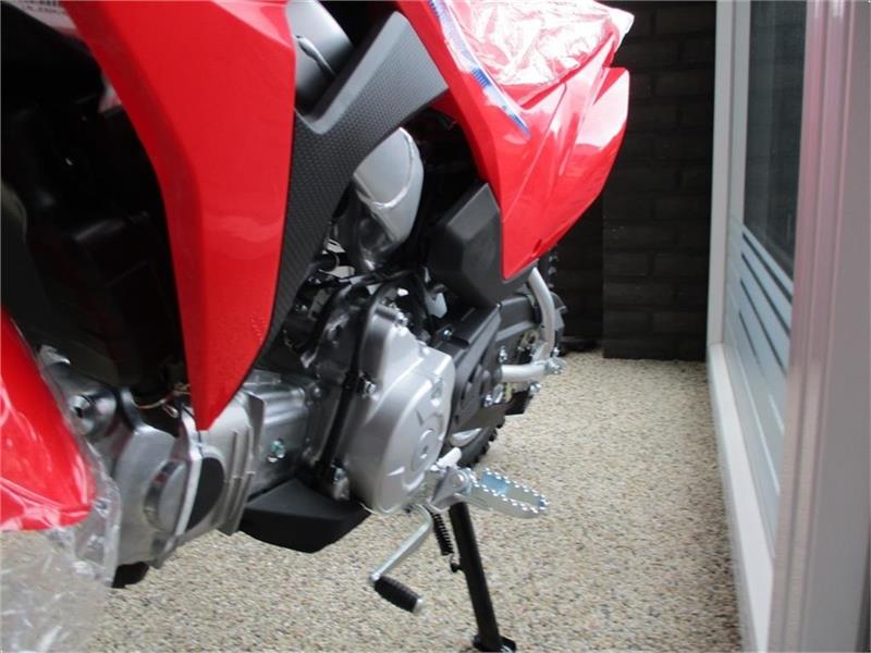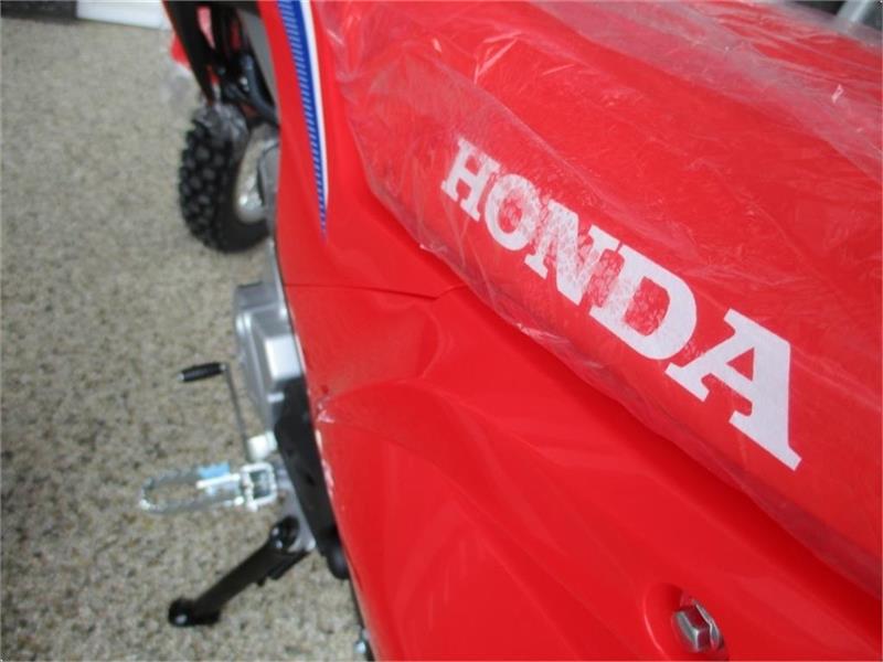 | Når de helt unge får den ustoppelige trang til at køre, er der ikke noget bedre udgangspunkt end en rød Honda CRF 110F off-roader. Hondas robuste CRF110F giver stabilitet og tillid til unge kørere, og åbner døre til oplevelser, der varer hele livet. Den har en elektrisk starter, en helt ny stålramme med forbedret ophæng, hvilket øger “big-bike” -følelsen og ydeevnen. Holder de yngste kører glade - hele dagen lang. Den har el-start, 4 gear, men bibeholder slyngkoblingen. Hjulstørrelsen er 14-tommer for og bag. Så her får du en Crosser som er lavet til at blive brugt uden at gå i stykker, og den holder en god værdi, for alle ved at Honda står for kvalitet. Kom forbi og se den, vi har den på lager. Lintrup Maskinhandel er din Honda forhandler |