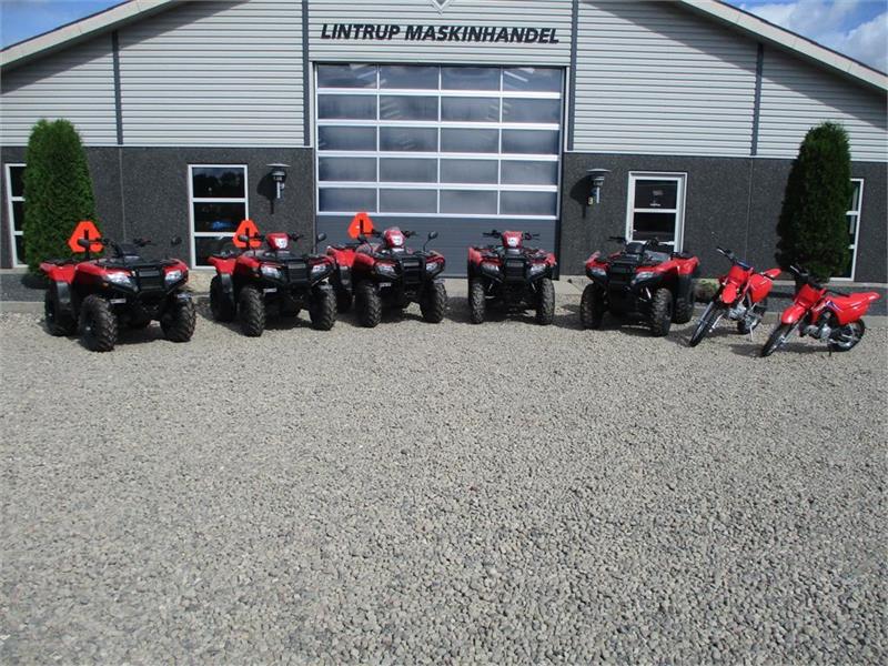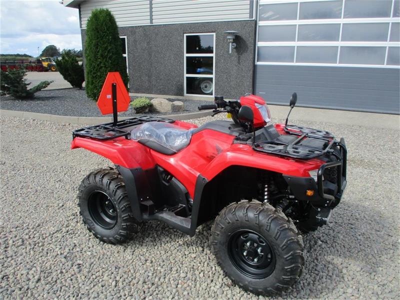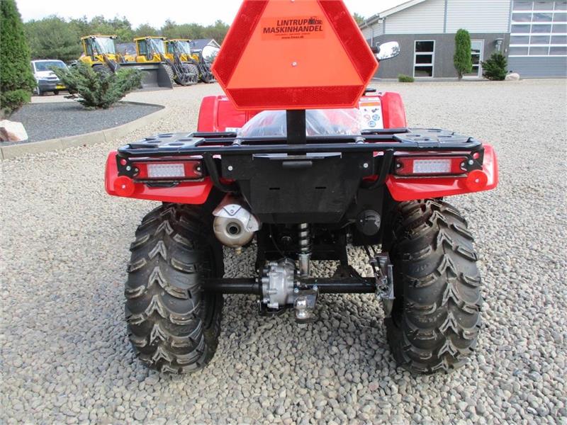 | Fabriksny Honda TRX 520 FE2. Motor: Vandkølet 1-cylindret 4-taktsmotor Volumen: 518 kubik Motor: 28,7 hk ved 6.250 o/m og 37,9 Nm ved 5.000 o/m Køreklar vægt: 286 kg Honda TRX 520 FE er bygget til heavy duty arbejde. Honda TRX 520 FE er virkelig en glæde at køre, med servostyring som standard har du perfekt kontrol over styringen og skal ikke bruge særlig mange kræfter på at dreje. Under 4-hjulstræk kan du per trykknap aktivere fuld differentialespærre. Gearskifte sker let ved hjælp af trykknapper ud for din venstre tommel. Den faste bagaksel på TRX 520 FE gør desuden den hårdtarbejdende ATV til et hit, hvis du har brug for en høj bugseringskapacitet. 518 kubik vandkølet specialdesignet TRX-motor med benzinindsprøjtning. Elektronisk servostyring 4- hjulstræk med avanceret differentialespærre. Lukket transmission med kardan træk (ingen vedligeholdelseskrævende kæder eller remme), Trykknapbetjent elektrisk skifte program til gearkassen, bakgear, Dobbelte skivebremser foran, Solide bagagebærere for og bag. med kugletræk og lysstik, LED baglys. T3 traktor, kan indregistreres både til Private og Erhverv. Så her får du en Traktor-ATV som er lavet til at blive brugt uden at gå i stykker, og den holder en god værdi, for alle ved at Honda står for kvalitet. Lintrup Maskinhandel er din Honda ATV forhandler. limas. dk |