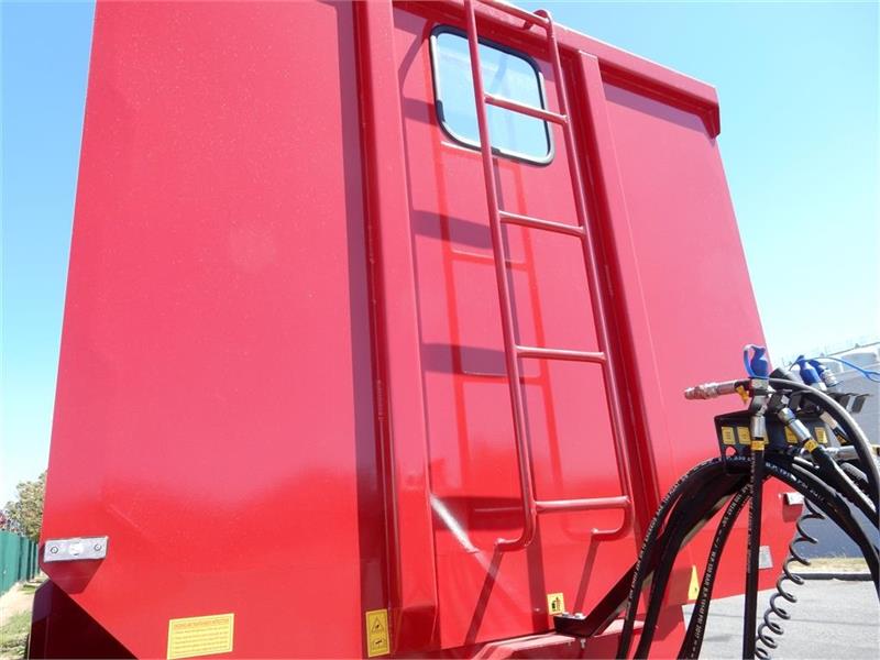 Ny 16 tons bagtipvogne med - kraftig 5 mm profilvalset stålkasse - glas i front - hydraulisk fransk bagsmæk med lås - tip med stabilserings- og sikkerhedsplade - hydrauliske bremser på alle 4 hjul - justerbart træk i 4 punkter - drejbart prodsøje - hydraulisk støtteben - lovpligtigt lysanlæg og nummerpladelys - ekstra svære affjedret 10 huls aksler - 600/50R22.5 - skærme - trapper - kornudløb - værktøjskasse - Dimensioner kasse: Længde 5.65 meter - bredde 2.20 meter - højde 1.80 meter - 22.3 m3 - På lager til omgående levering -