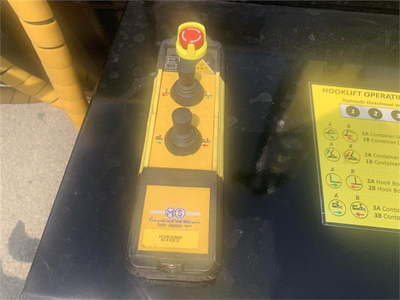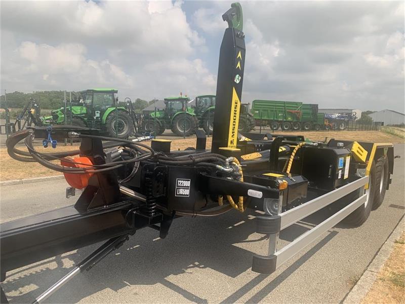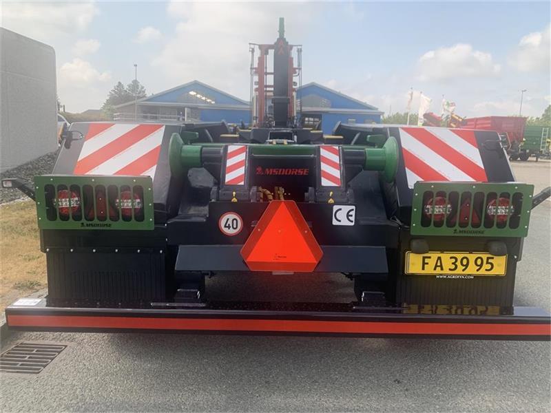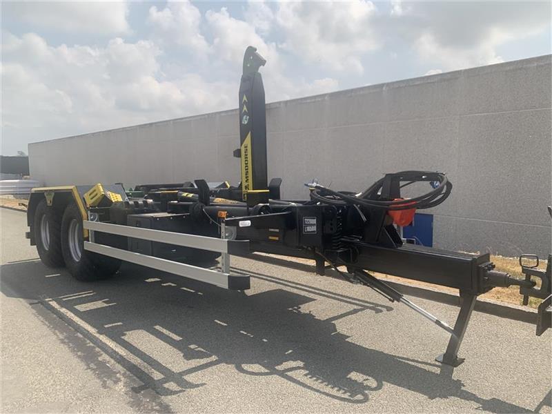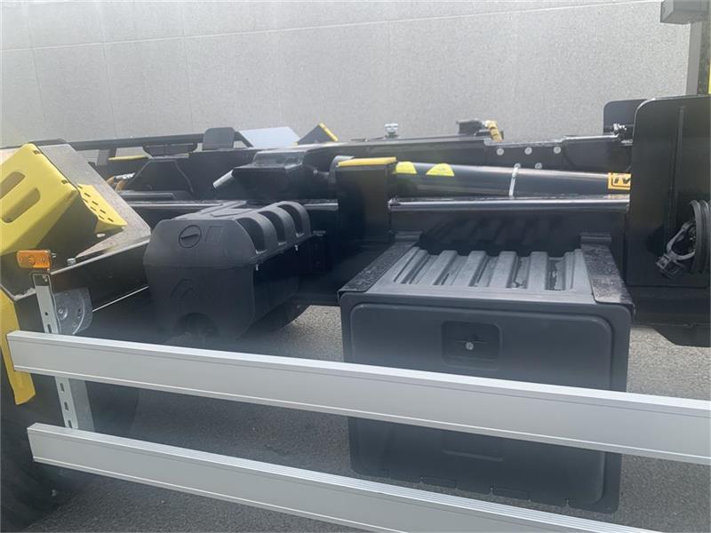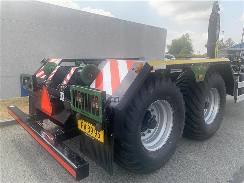 Hjulmontering 600x50-22.5 - hydraulik station incl. elstyring med fjernbetjening kan også betjenes med traktorhydralik - hydr. lås af container - hydr. bremser - hydraulisk støtteben - værkstøjskasse - kroghøjde 1450/1570 mm - containerlængde op til 6 meter