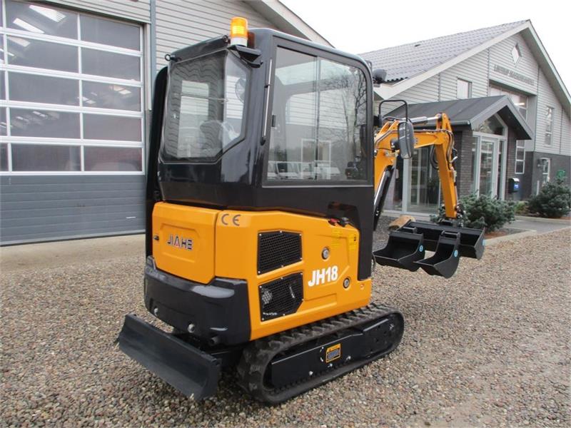 Additional informationJIAHE JH18 minigraver med original Kubota diesel motor. Den har hydraulisk sving på gravearmen og doserblad. Der er monteret et Dansk CP-metal hurtiskifte på den med med S30-150 skifte. Skovlpakken som er med følgende er også fra CP-Metal og er er en 20cm, 40cm og en 100cm planereskovl med til den. Svingbom og udtag til 3die funktions hydraulik. Der er kabine på den med varme, den kan den nemt afmonteres, uden på er der 2stk led lygter fremefter, arbejdslygte på gravearmen, og rotorblink. Maskinen er en helt fabriksny maskine. Vi hjælper gerne med at financier den og vi tager gerne dine gamle maskiner i bytte. Den kan også lejes for en periode hvis det måtte ønskes, ring og forhør nærmere om dette. Køb-Salg-Bytte-Udlejning ring 74855292 eller se mee på www.limas.dk