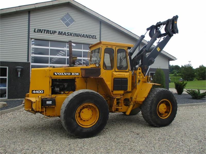 Volvo 4400 med hydraulisk hurtig skifte. Den starter og køre som den skal. På kabinen er der 2 arbejdslygter frem samt 2 bagud og A/C. Det er en fin og stærk ged til små penge. vi tager meget gerne dine brugte maskiner i bytte. Se altid over 100 brugte traktorer til salg på vores webside limas.dk
