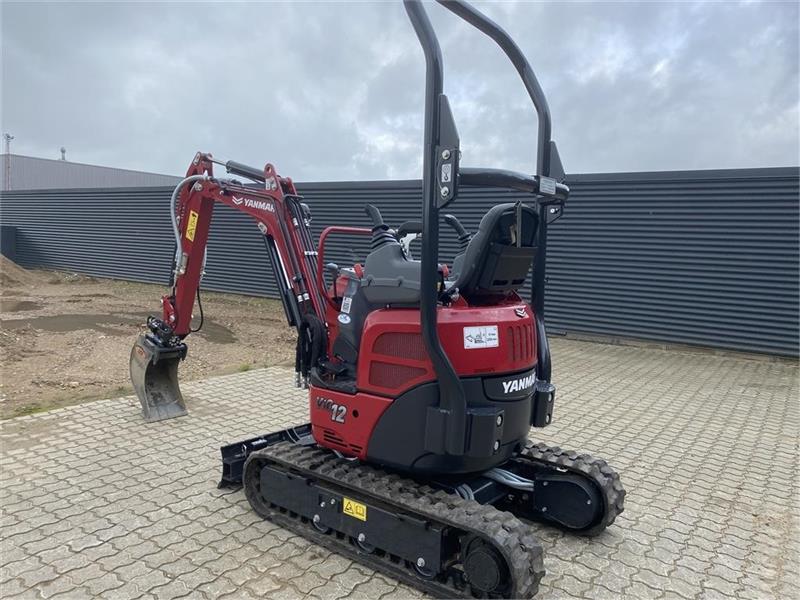 Demo Yanmar VIO12 minigravemaskine med joystick styring, variabel pumpe, 2000 mm gravedybde, 3 cylinder Yanmar motor, hydraulisk udskydelig undervogn og 2 speed undervogn.