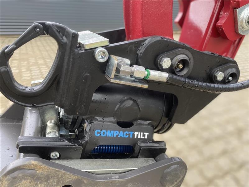 Maskinen er udstyret med Compact Tilt CT1 med halvautomatisk skifte og planereskovl.