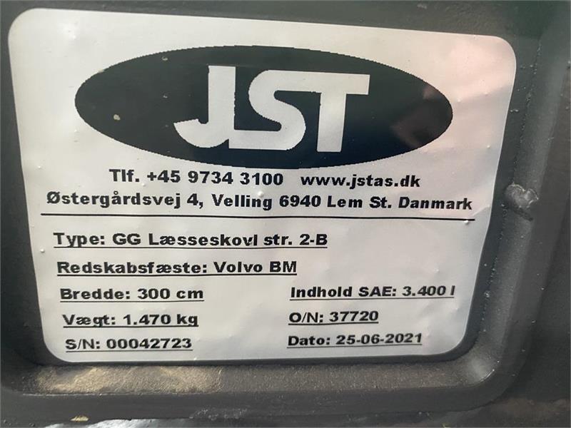 Fabriksny JST GG str 2B skovl der er 300cm bred og indeholder 3,4kbm! Absolut bedste kvalitet på markedet og her udstyret med Volvo BM fæst og Forkant/bag skær! Lakeret i Grå! 100% made in denmark! På lager til omgående levering eller afhentning!